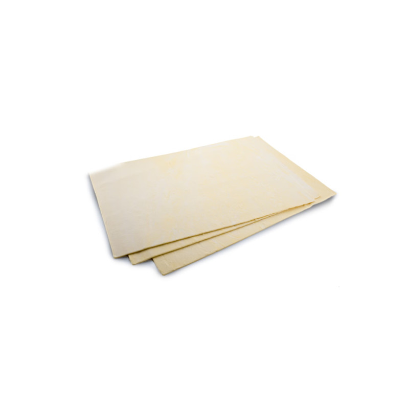 Premium butter puff pastry sheets with dozens of flaky, golden layers. Rich and buttery with a tender crunch after baking. Perfect for savory pies, tarts, and elegant pastries.