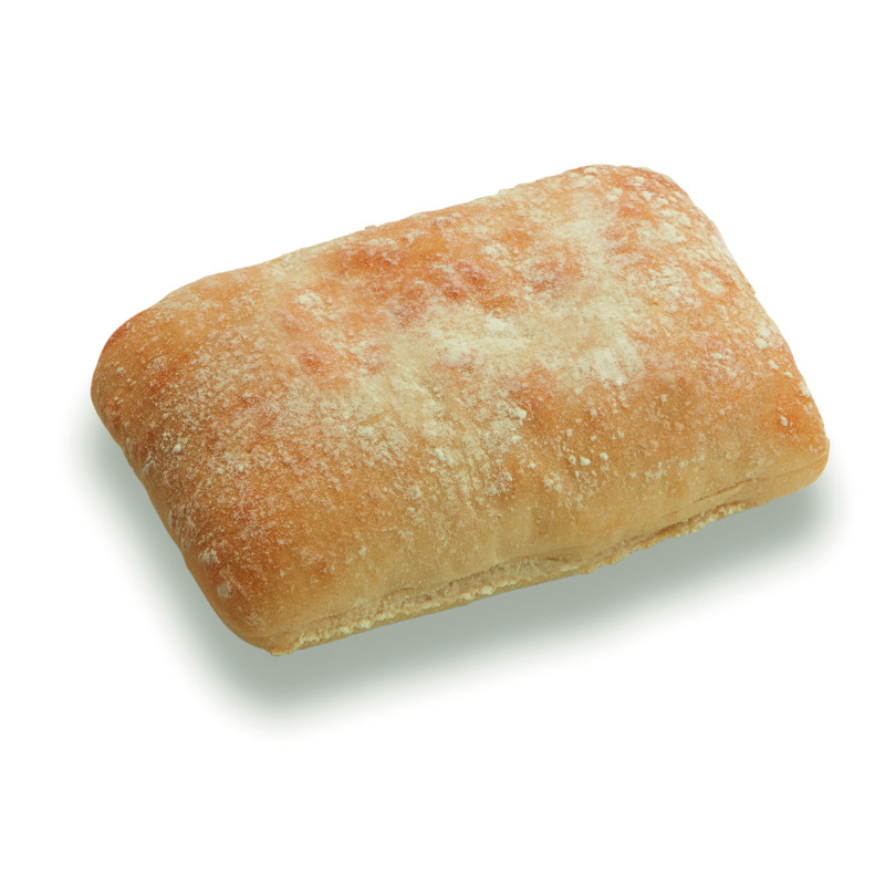 Light, airy panini bread with a crispy crust and open crumb; mild wheat flavor. Ideal for sandwiches and toasting. خبز بانيني خفيف بسطح مقرمش وفتحات هوائية في الداخل؛ نكهة قمح خفيفة. مثالي للسندويشات والتحميص.