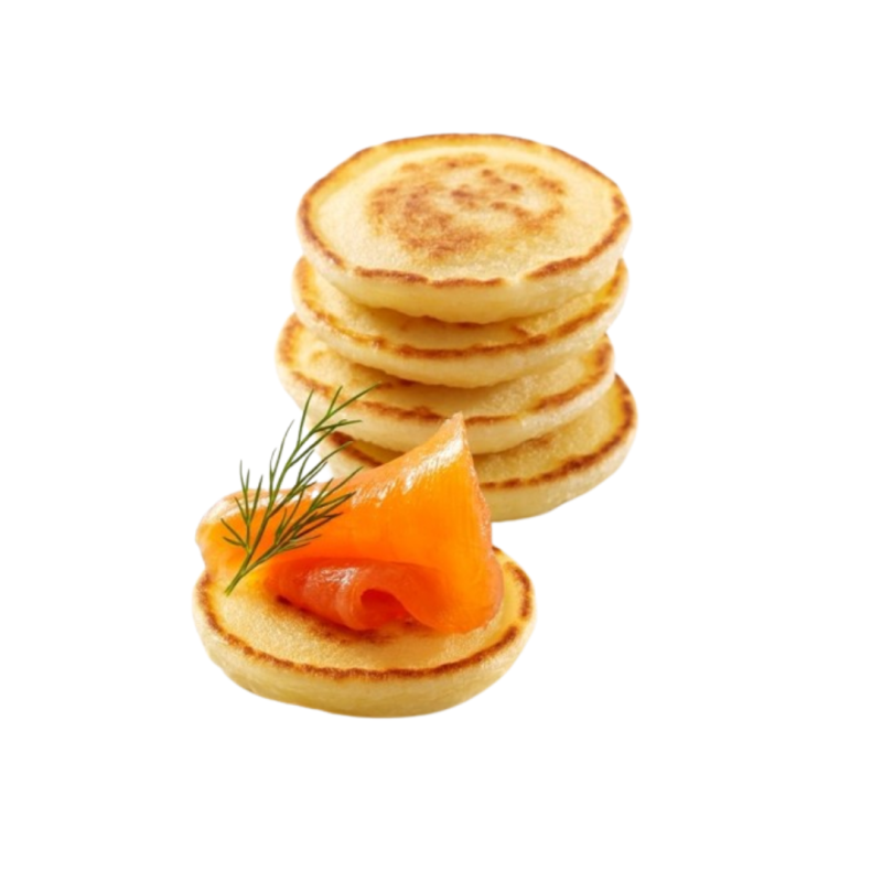 Blinis have their origin in the Russian culinary tradition. They are small, thick, soft pancakes without sugar, made from wheat and/or buckwheat flour.