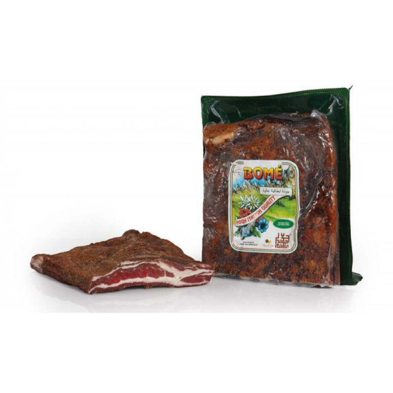 Bomé' success is based on unique cold cuts preparation, with fine ingredients and specific salting process. The italian company main products are speck, Trentino salted meat, smoked and stewed pancetta, speckotto, lard, fumatello, Nobile and cooked prosciutto.