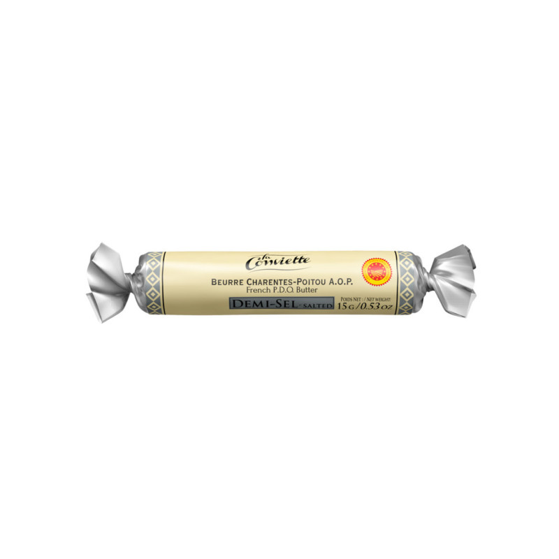 La Conviette butter, honored with the esteemed Charentes-Poitou PDO label, is now accessible for the first time in the United States. This 15g (0.53 oz.) butter is crafted using time-honored production methods, devoted to creating an exceptional butter known for its outstanding taste and spreadable texture. Crafted from pasteurized and matured creams, it is available in both salted and unsalted varieties, elegantly presented in individual wrappers to preserve its freshness.