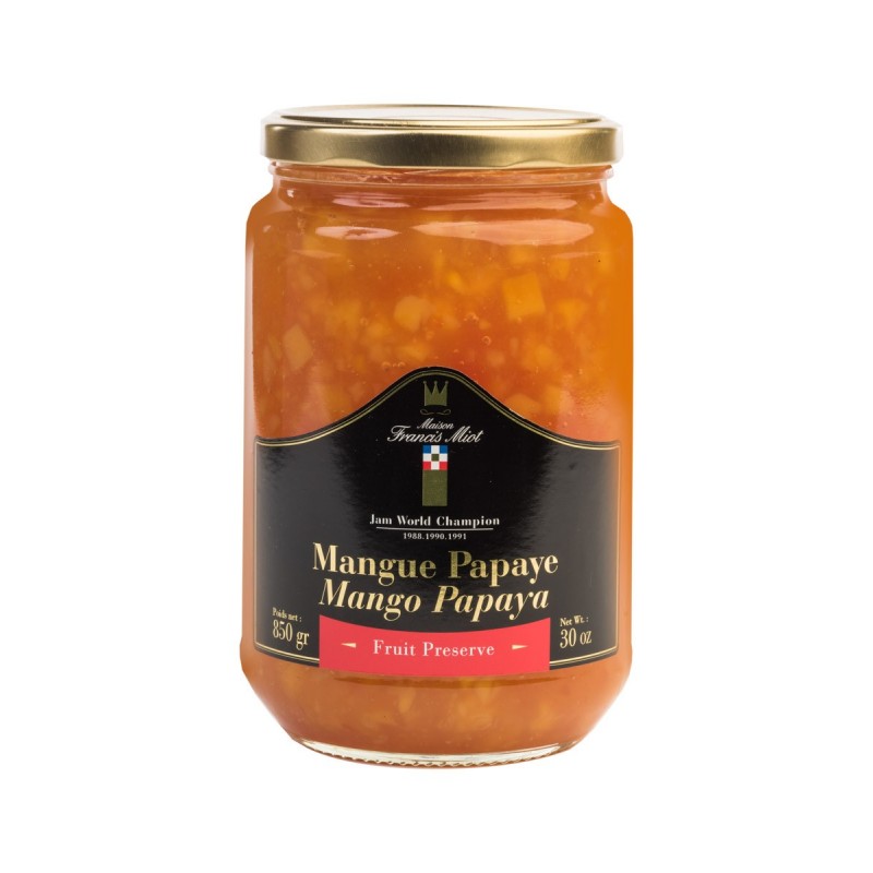 An exotic blend that will instantly transport the breakfast table to the tropics. Maison Francis Miot offers a modern recipe that is brought out by our unique expertise. A preserve where freshness meets exoticism in an authentic union between mango and the lightly sweetened, subtle flavors of smooth papaya.