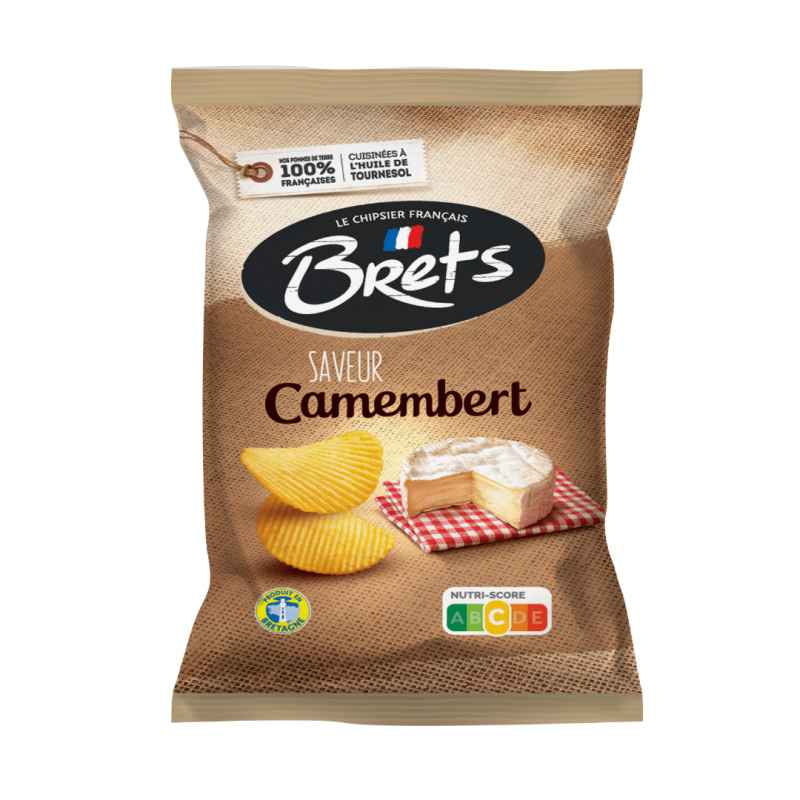 Bret's Chips With Camembert Flavor feature the essence of Camembert, a soft and creamy cheese with its origins rooted in France. These potato chips have been carefully crafted to mimic the taste of Camembert cheese, offering a creamy and subtly tangy flavor, accented by a touch of saltiness.