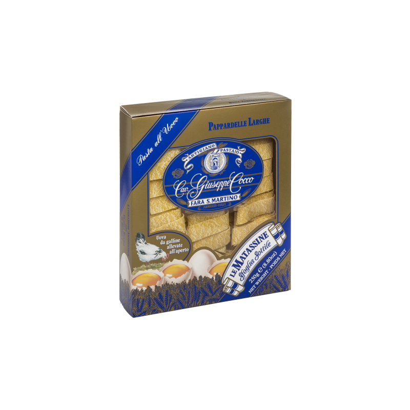 There are different reasons why Pasta Cocco is so unique and still said to be among the best pasta in Italy. Produced with traditional old machines, Giuseppe Cocco has rebuilt right after the second world war, piece by piece, the necessary tools to continue his father’s know-how for Italian pasta making."