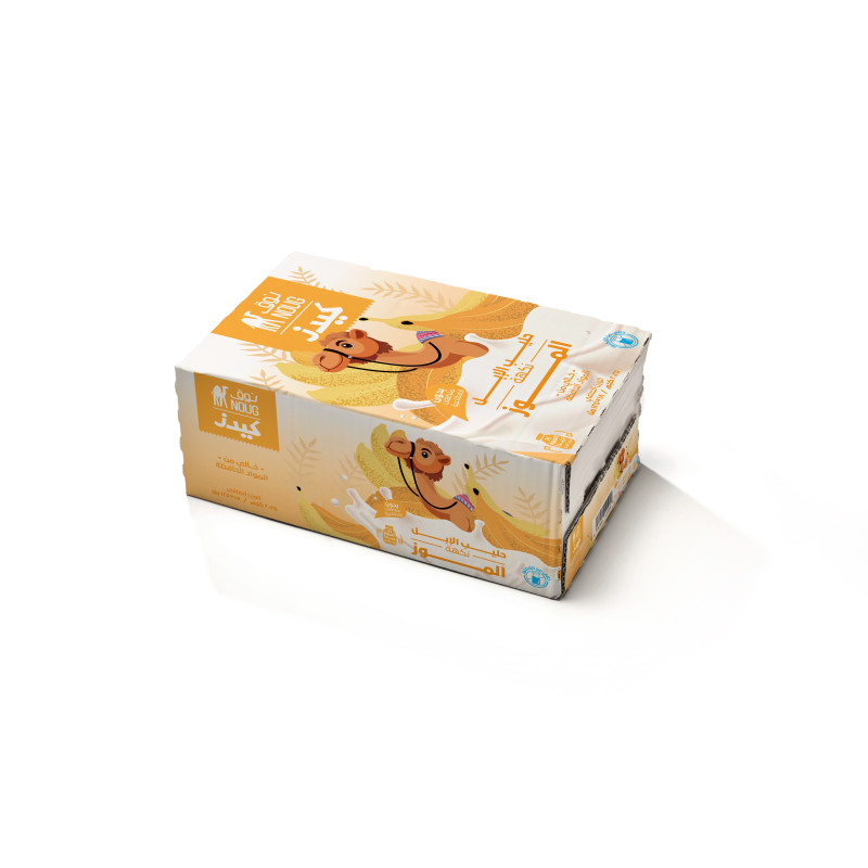 Sweet banana taste blended with light camel milk. مذاق الموز الحلو ممزوج بحليب الإبل الخفيف.