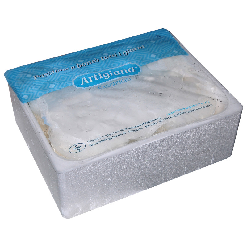 Ricotta cheese is a creamy dairy product placed in the typical plastic "fiscelle". It is distinguished by a soft structure with a delicate and sweet taste, which enhances all the properties of cow's milk.