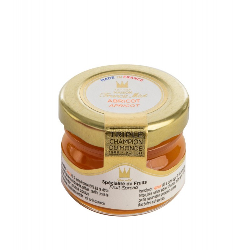 Faithful to its desire to always reveal the fruits natural purity, Maison Francis Miot makes every effort to use the best varieties of apricots known for their excellent quality of taste. Delicately flavored, this apricot preserve represents a great classic to simply enjoy on toast, as well as topping a cake, or even complementing some panna cotta. Gold Medal at the Salon de lAgriculture in Paris in 2013