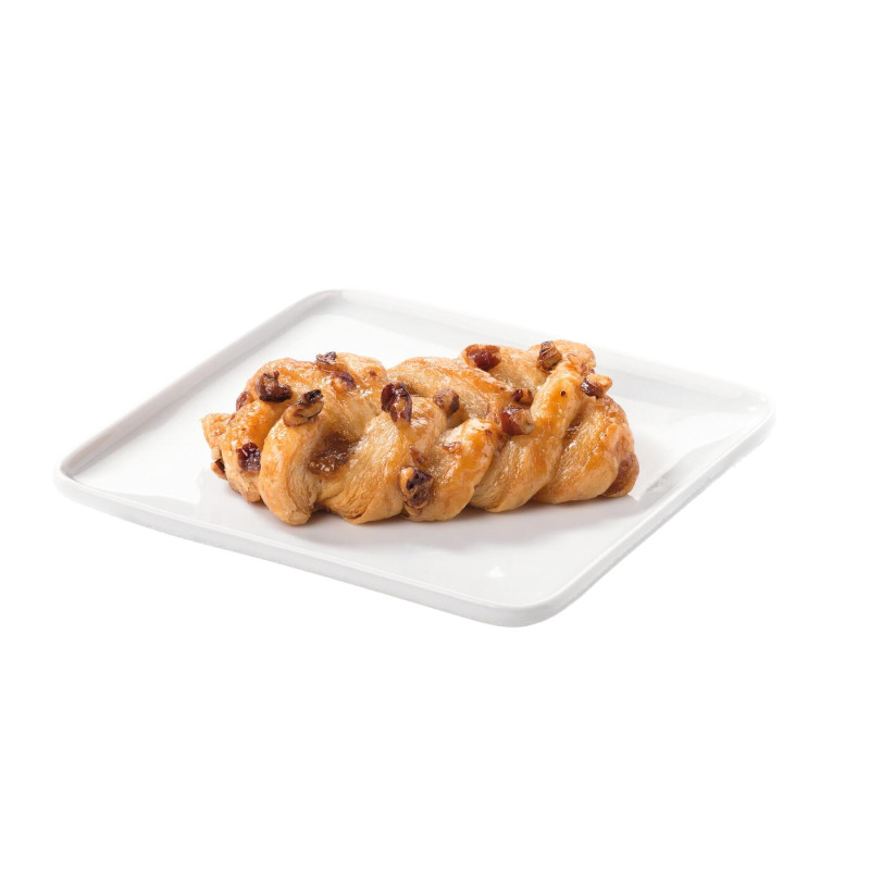 Flaky pastry twisted with caramelized pecans for a nutty crunch. A delicious pastry treat with a balance of sweetness and crispness.