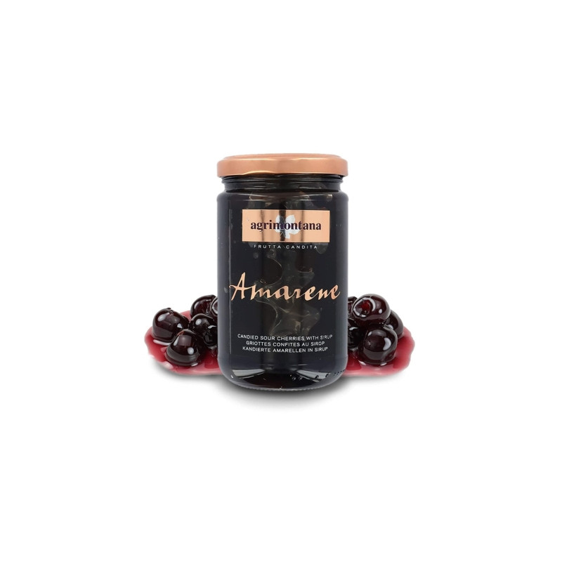 Luxurious Amarenata cherries with a rich, sweet-sour taste, ideal for gourmet desserts, tarts, and chocolate confections.الكرز أميراناتا المسكر في شراب لطيف - ٦٠٠ غ: كرز أميراناتا فاخر بنكهة حلوة-حامضة غنية، مثالي للحلويات الراقية والفطائر والحلويات بالشوكولاتة.