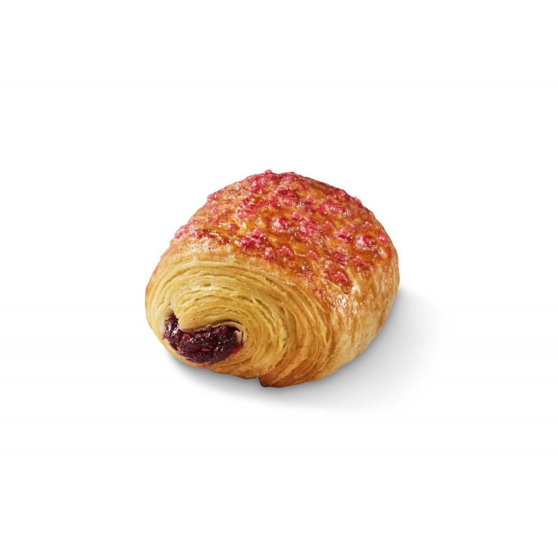 A mini roll with a delicious gourmet rasberry filling. Its unique pink sugar topping adds crunch !