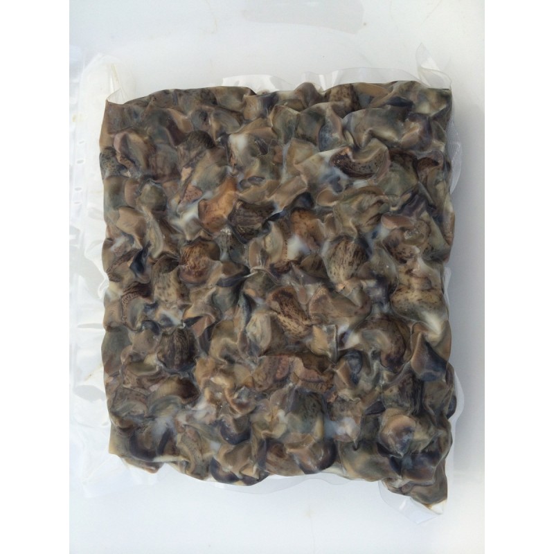 Flesh of escargots Helix Aspersa Maxima cooked in a court-bouillon. Escargots born, farmed and cooked in France